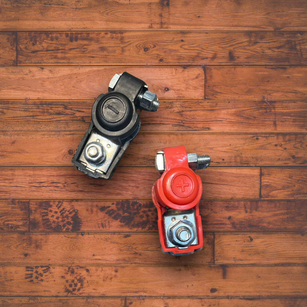 Bornes para bateria con su respectivo cubrebornes pequeños.